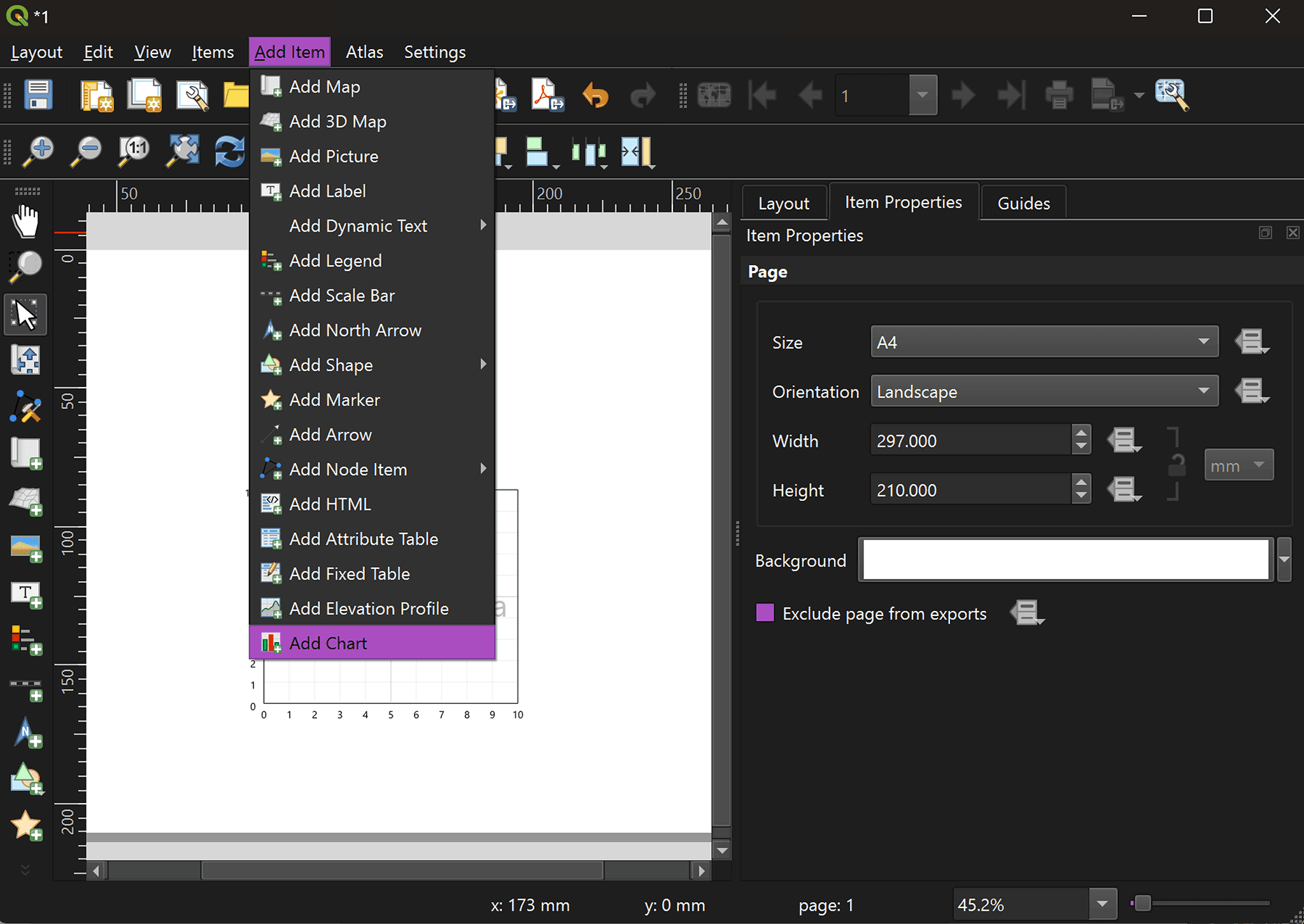 A major addition is the new chart element. Users can now add pie charts, histograms, and line charts directly into layouts. These charts are based on layer attributes and can be configured using expressions and filters. This turns layouts into analytical dashboards rather than just static map outputs.