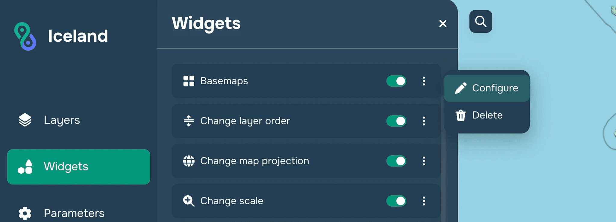 You can select any substrate from the list and add it by clicking on the switch next to the base map, after which it will be available for selection when using the widget.