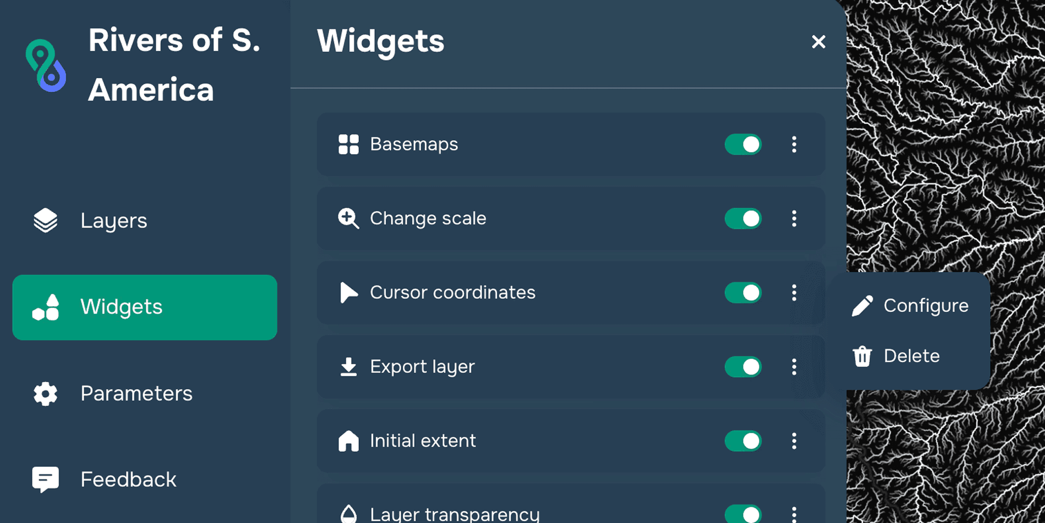 To set up the widget, click on the three dots next to the name of the widget and select "Configure."