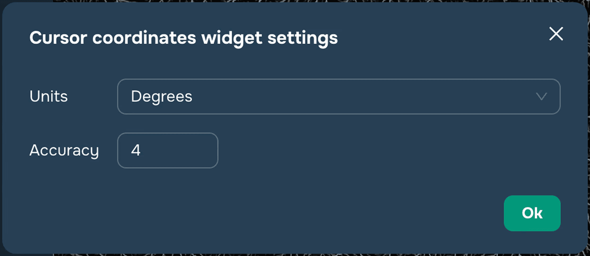 In the drop-down window, set the parameters for displaying the cursor position by selecting the units of measurement: