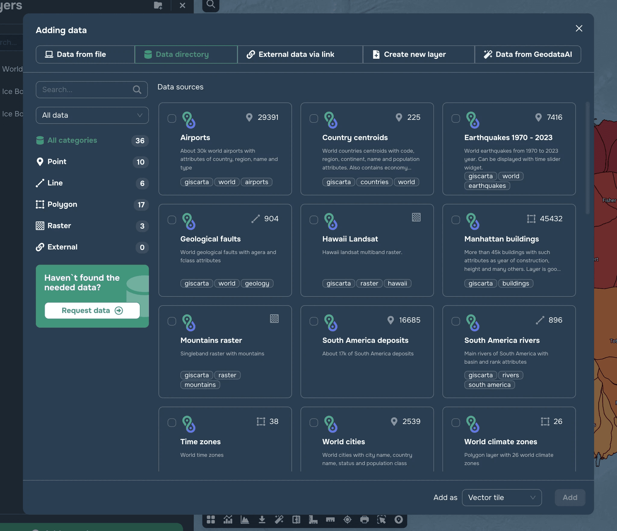 To add data to the web map, you need to go to the appropriate section “Layers”.