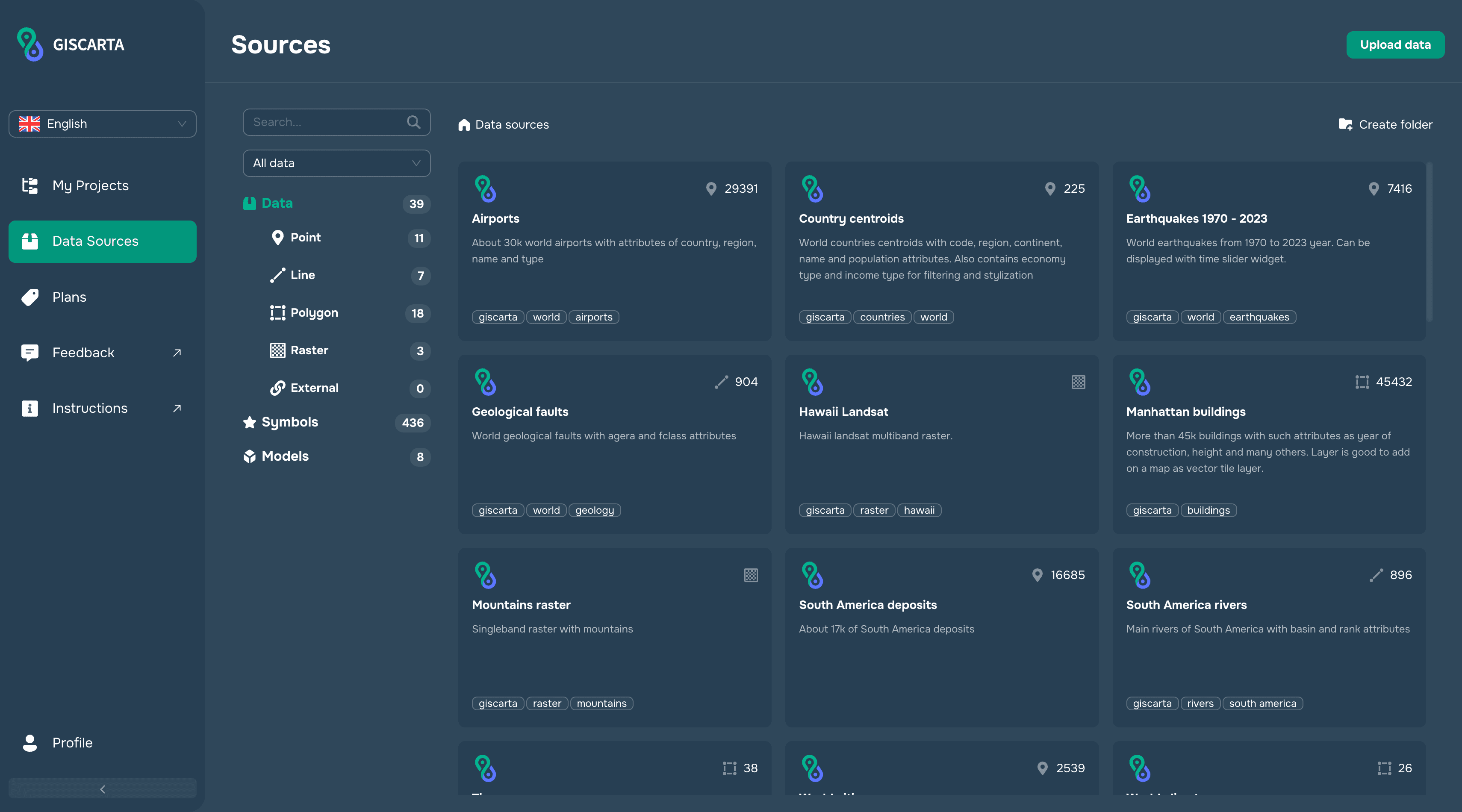In the upper bar, you can select a filter by data type from the drop-down list: