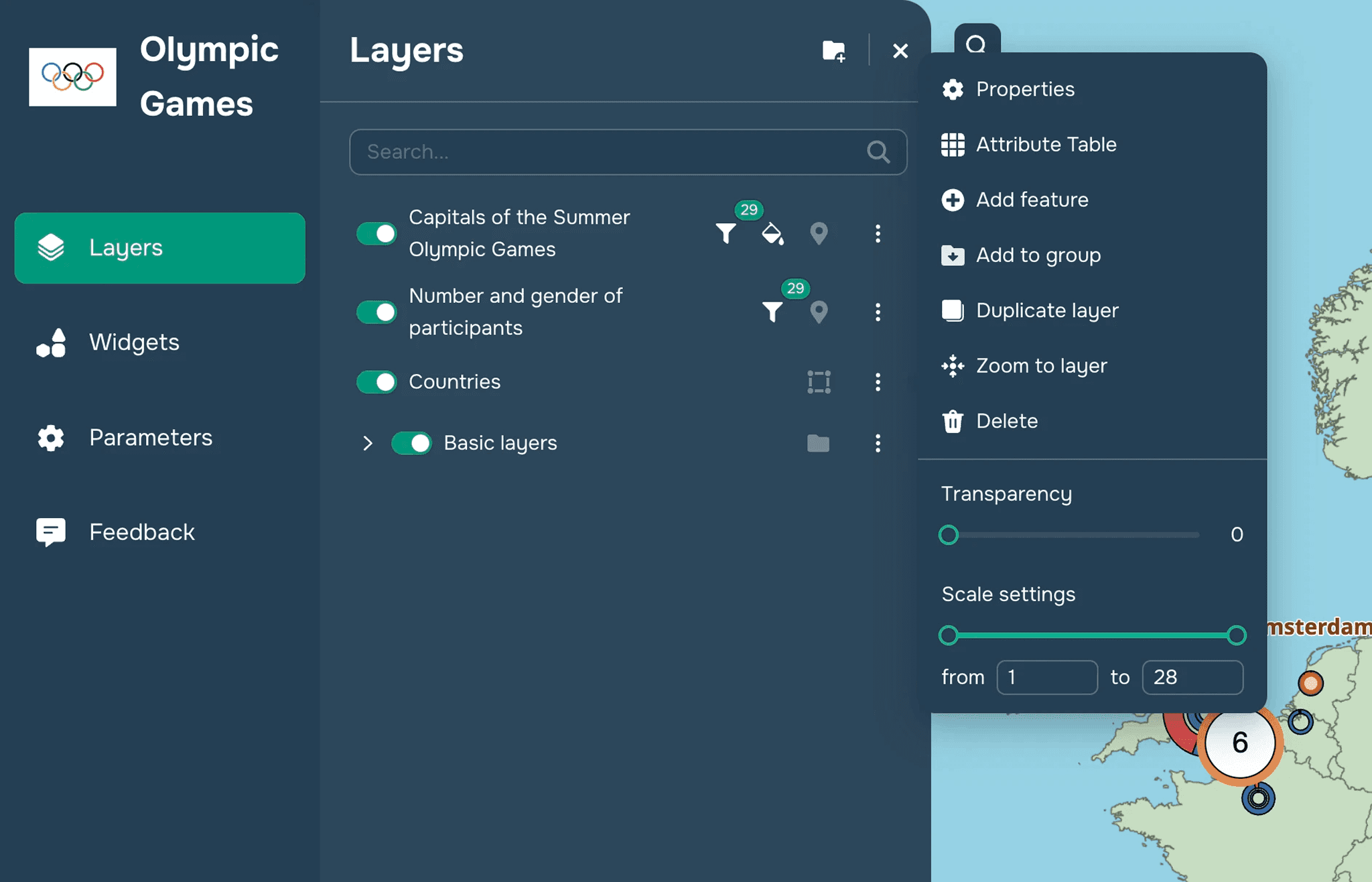 Change layer orderwidget)Open the layer editing window (see