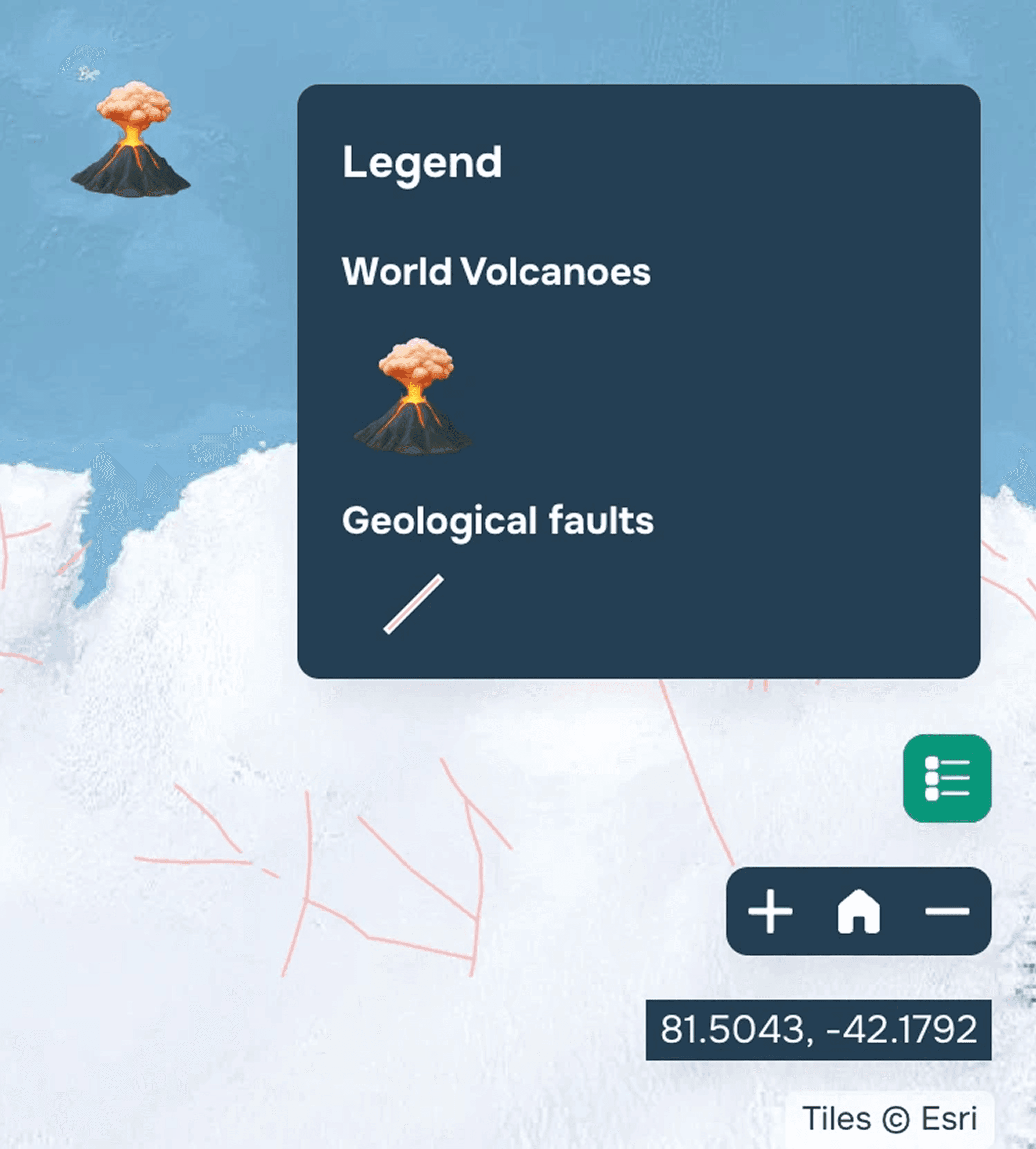 Click on the "Legend" icon in the lower right corner of the map to open the legend (see Figure 3). Scroll up and down in the legend window if there are many objects. To close the window, click the "Legend" icon a second time. The layer symbols will be displayed in the legend if the layer is enabled.