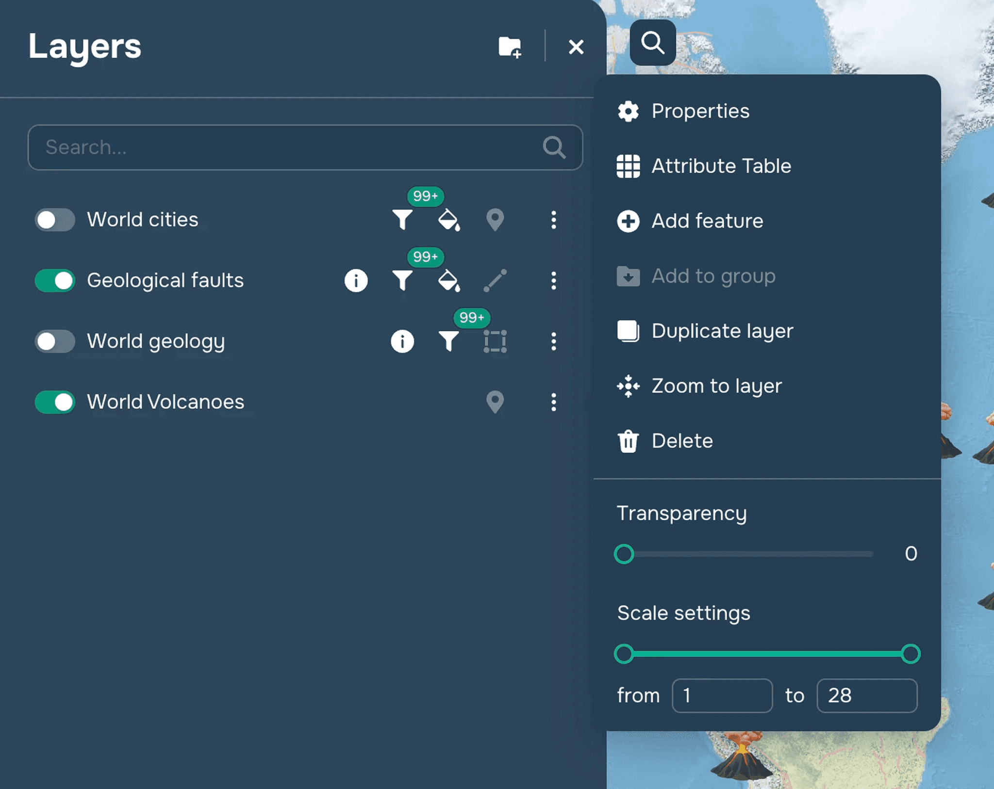 To set it up, select "Layers" from the menu on the left, then select the relevant layer and click on the three dots next to its name (see Figure 1).