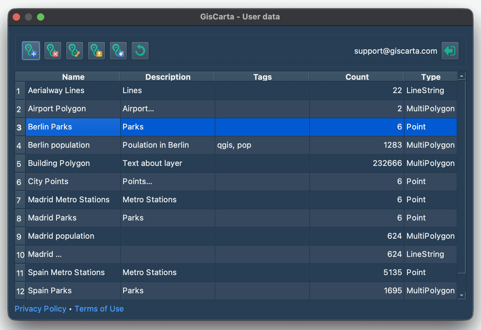 Upload layer to the GISCARTA platform