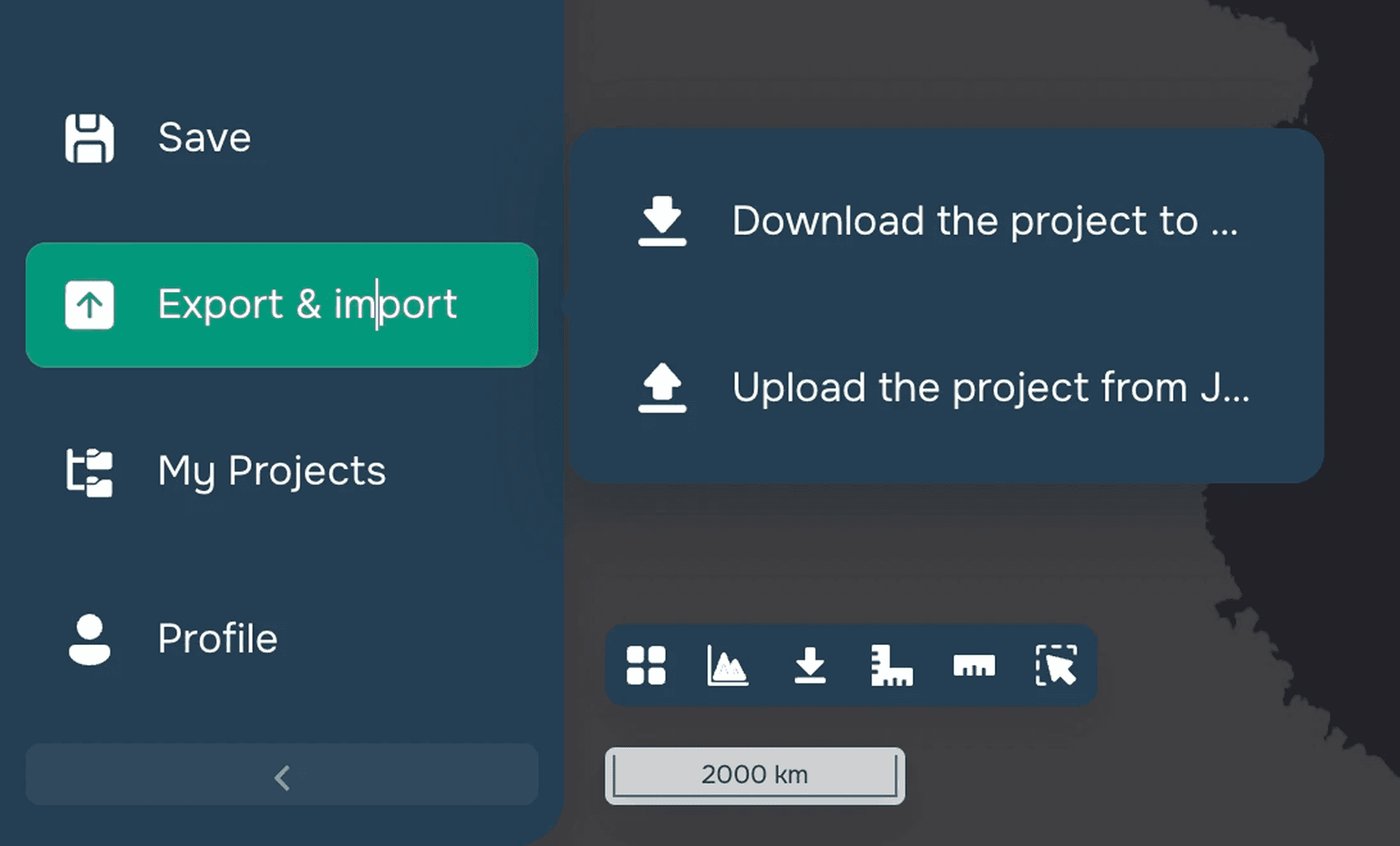You can save data in customized display styles and other map settings in JSON format by selecting the corresponding button in the export and import menu.