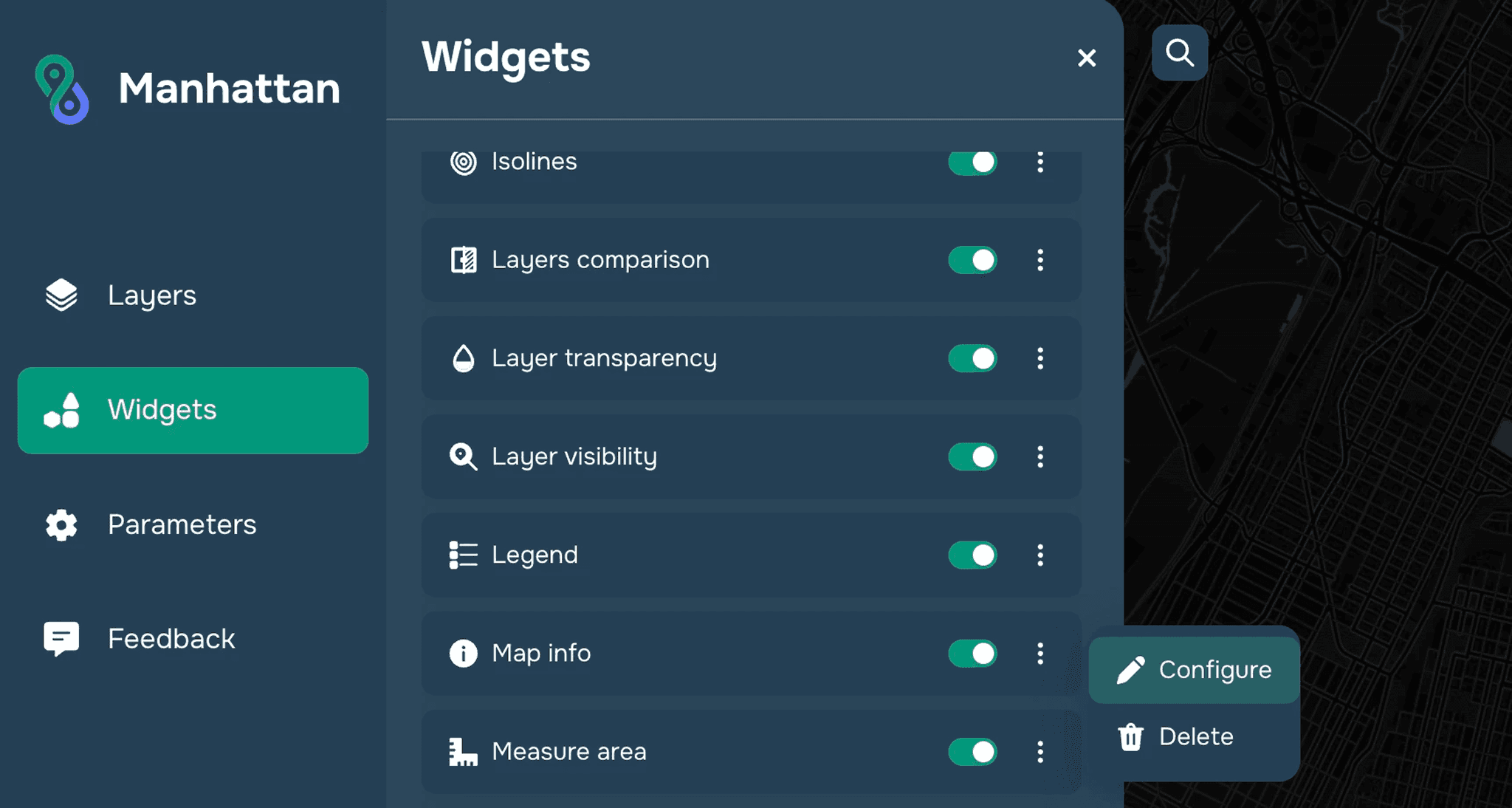 To set up the widget, click on the three dots next to the name of the widget and select "Configure."
