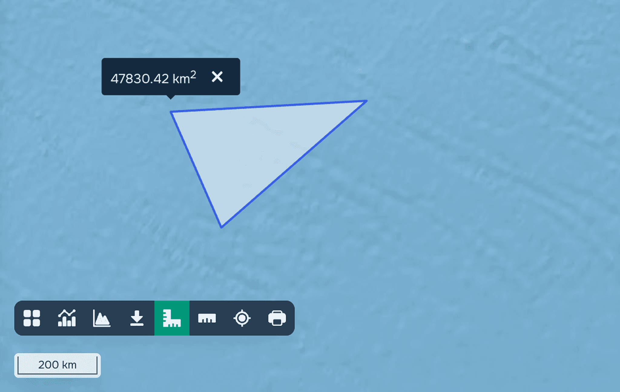 In the bottom left corner of the map window you will see the "Angle ruler" icon. To measure the area you need to:
