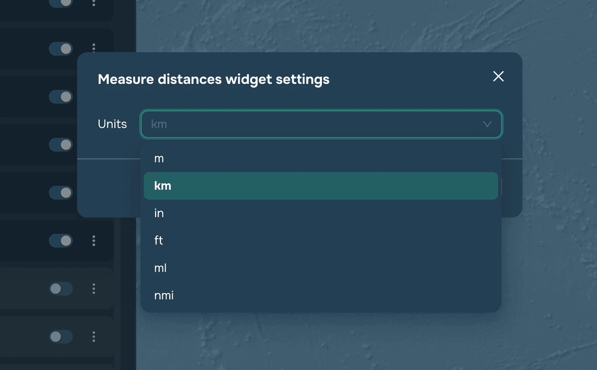 Select the units of measurement in the drop-down window: