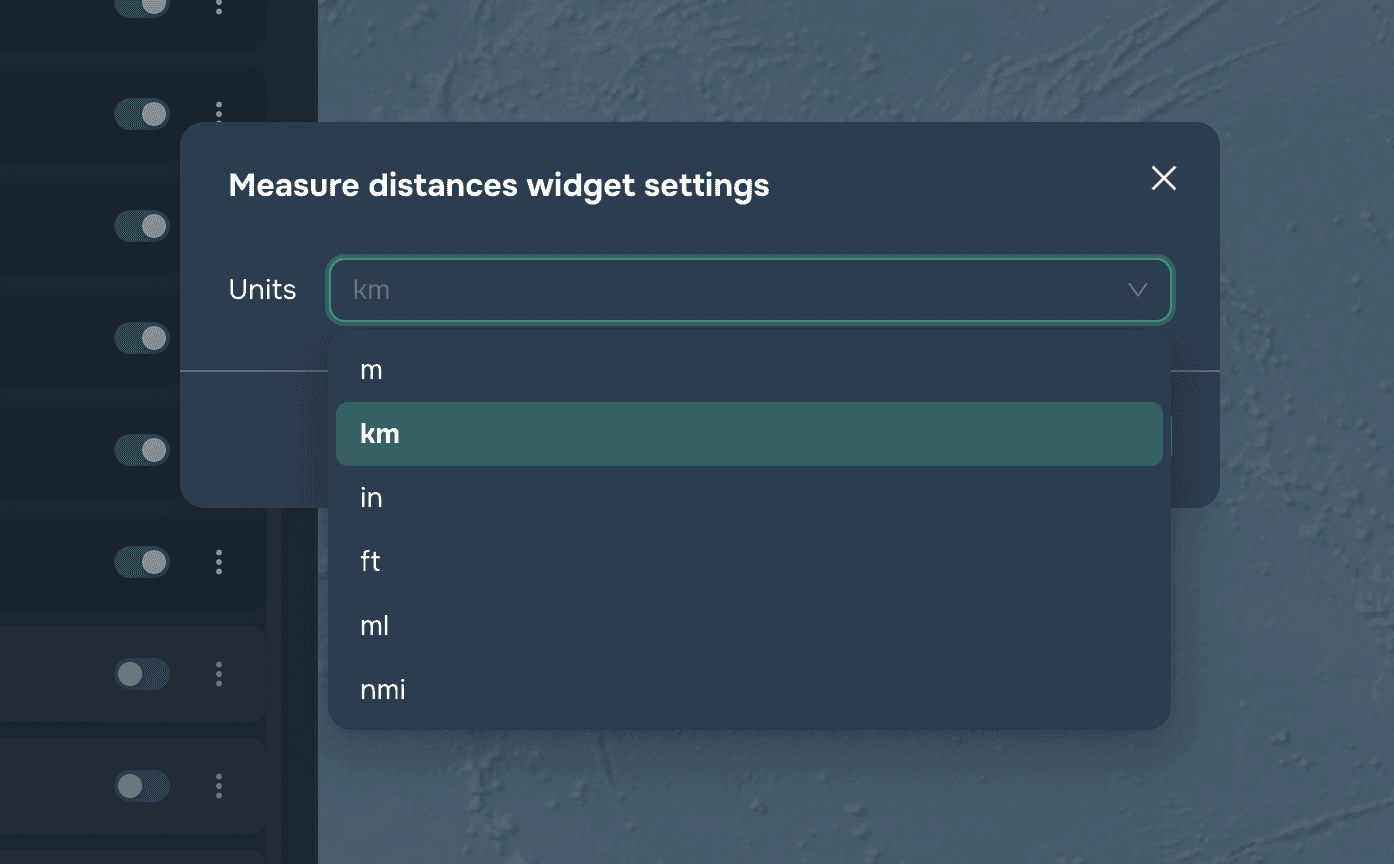 In the lower left corner of the map window, you will see the "Ruler" icon. To measure the length: