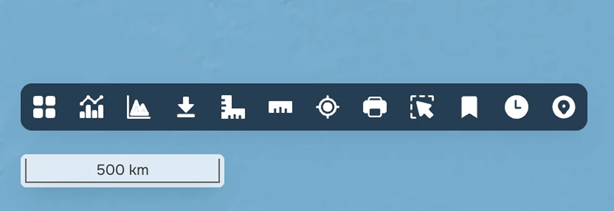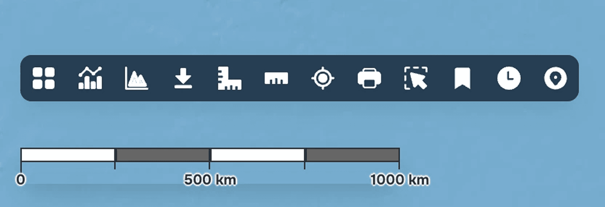 In the lower left corner of the map window, you will see the scale bar display corresponding to your setting. The scale value will change depending on the map extent.