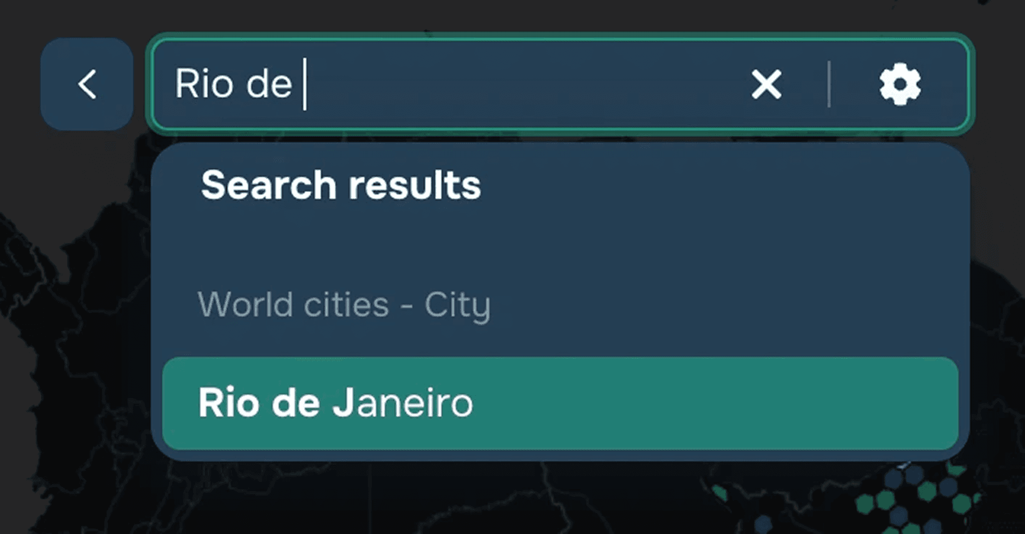 Search for objects on the map by entering text in the corresponding window at the top left part of the map (see Figure 3). The search results display the objects found in the customised layers or in the geocoder from top to bottom. By clicking on the gear icon to the right of the input field, the user can choose to search on the current map extent, and also take into account the filtering of layers in the search.