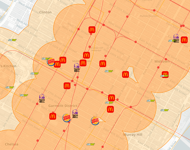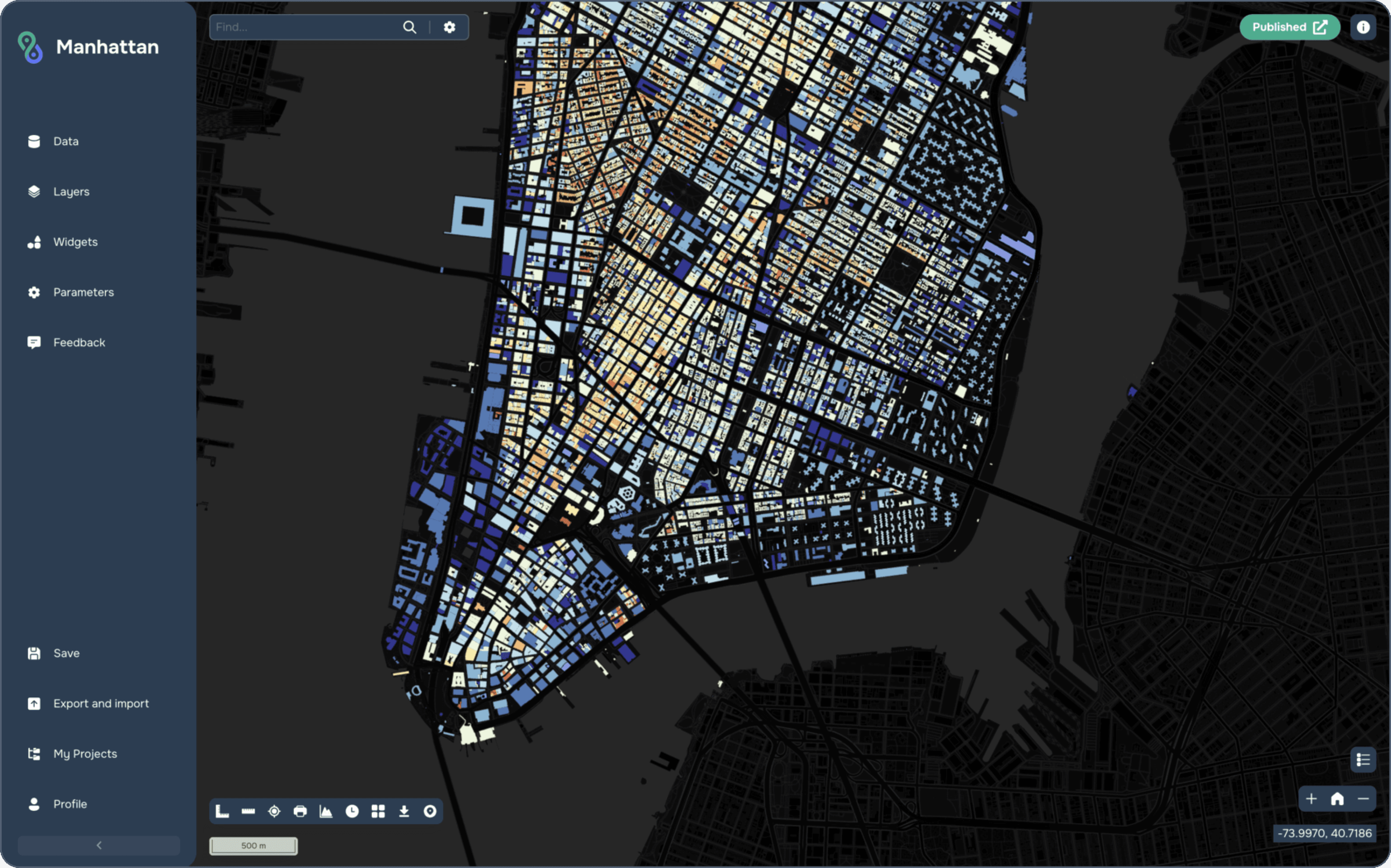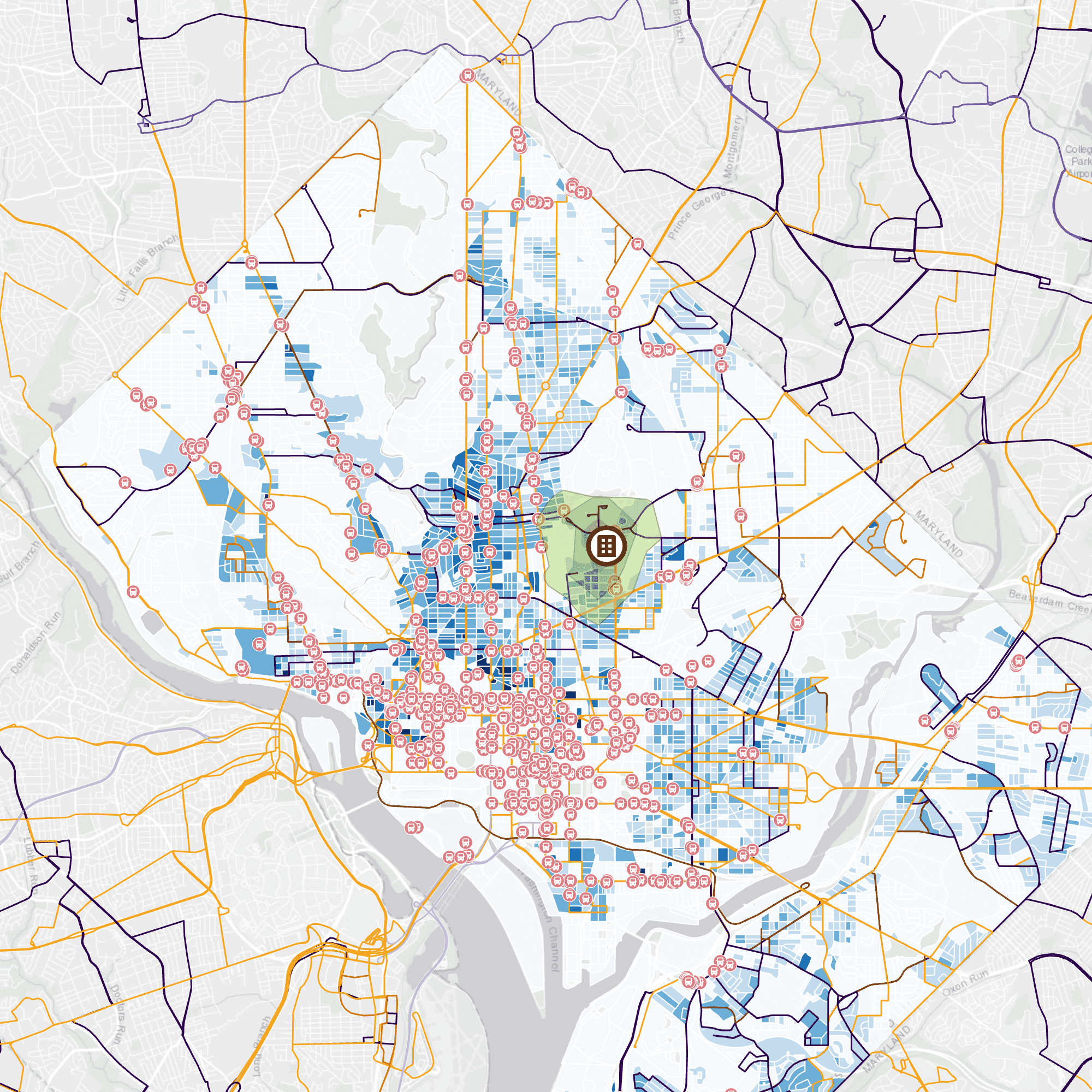 Widgets for working with spatial data: from transport accessibility zones, to heat maps and relief profile