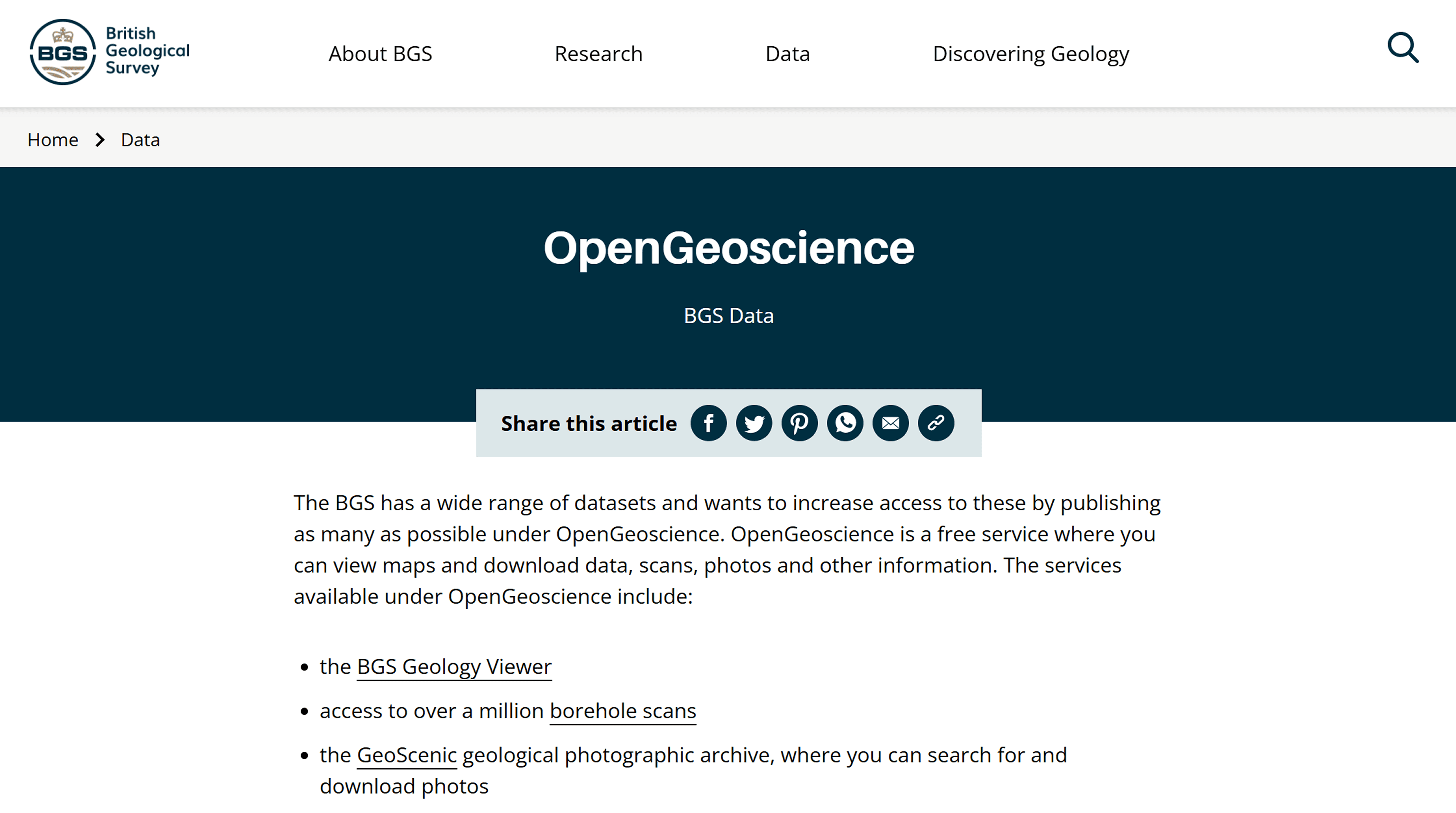 BGS OpenGeoscience | Maps, Scans, Photos | UK | GIS, API | Historical Data |