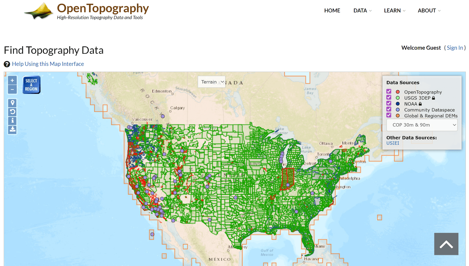 OpenTopography provides high-resolution relief and LiDAR data for scientific and applied studies.