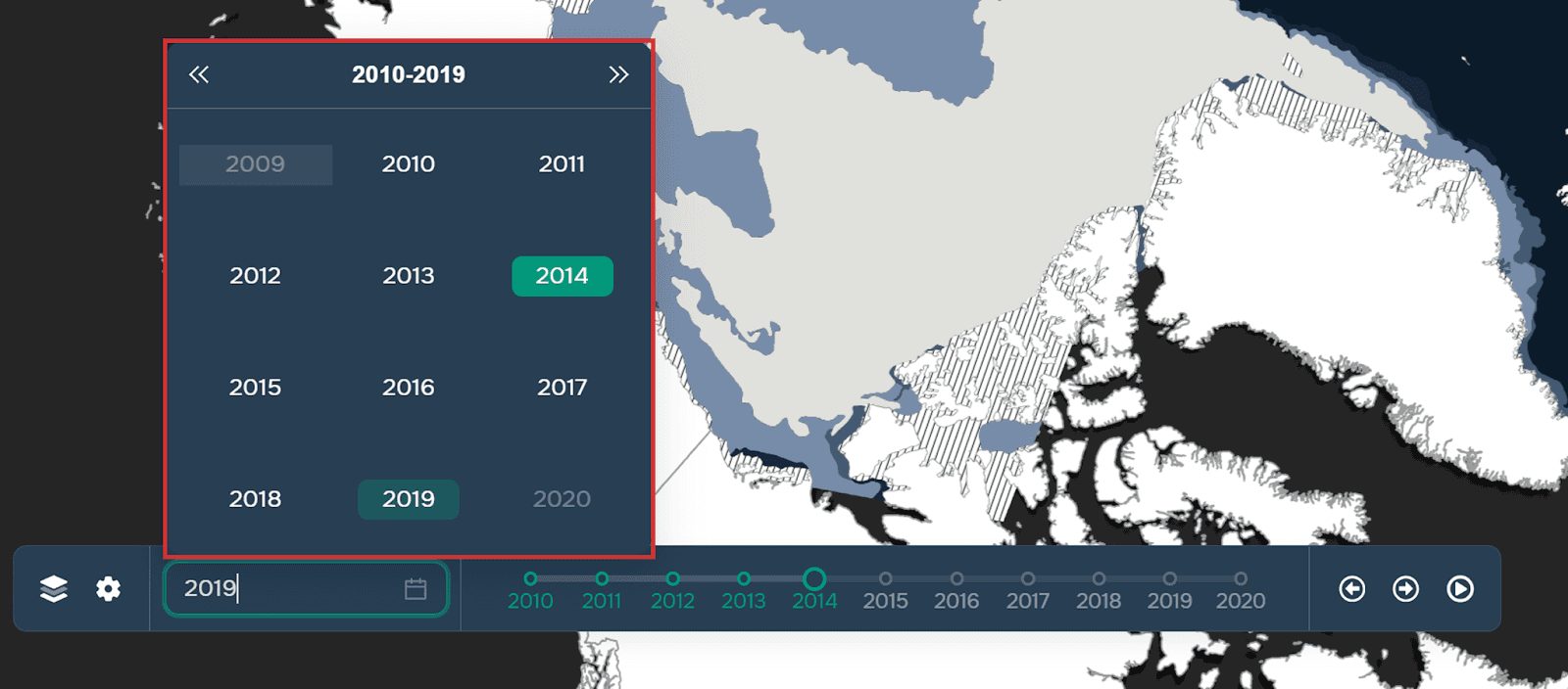 The widget's operation can be seen below using the example of changes in the composition of the Arctic ice cover.