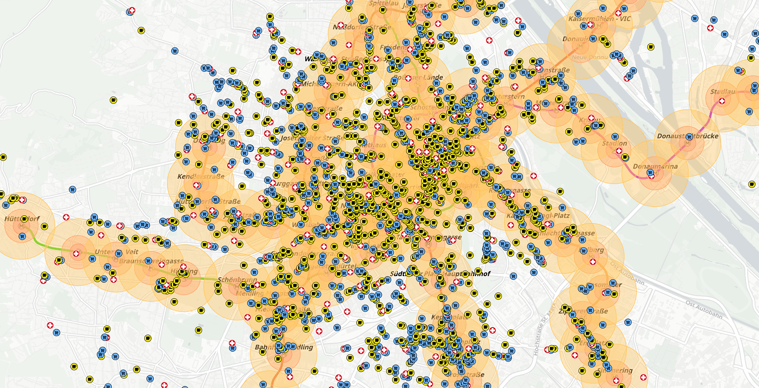 Map competitors and catchments at 500 m or 1 km